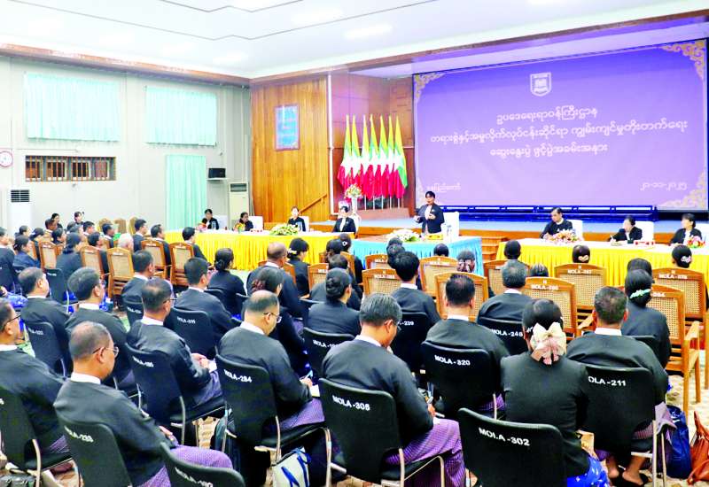 တရားစွဲနှင့် အမှုလိုက်လုပ်ငန်းဆိုင်ရာ ကျွမ်းကျင်မှုတိုးတက်ရေး ဆွေးနွေးပွဲဖွင့်ပွဲကို ယနေ့နံနက်ပိုင်းတွင် ဥပဒေရေးရာဝန်ကြီးဌာန မြေညီထပ်အစည်းအဝေးခန်းမ၌ ကျင်းပသည်။