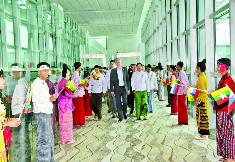 မြန်မာနိုင်ငံ၌ရောက်ရှိနေသည့် ရုရှားဖက်ဒရေးရှင်းနိုင်ငံ နိုဗိုစီဗစ်ဒေသအုပ်ချုပ်ရေးမှူး H.E.Mr. Andrey Aleksandrovich Travnikov ဦးဆောင်သော ကိုယ်စားလှယ်အဖွဲ့ဝင်များသည် ယနေ့နံနက်ပိုင်းတွင် နေပြည်တော်မှ တပ်မတော်အထူးလေယာဉ်ဖြင့်ထွက်ခွာရာ ရန်ကုန်မြို့သို့ ရောက်ရှိကြသည်။ ထို့နောက် နိုဗိုစီဗစ်ဒေသအုပ်ချုပ်ရေးမှူးနှင့်အဖွဲ့သည် ရန်ကုန်တိုင်းဒေသကြီးအစိုးရရုံးအစည်းအဝေးခန်းမ၌ တိုင်းဒေသကြီးဝန်ကြီးချုပ် ဦးစိုးသိန်းနှင့်တွေ့ဆုံပြီး ဒေသဖွံ့ဖြိုးတိုးတက်ရေးနှင့်ရင်းနှီးမြှုပ်နှံရေးဆိုင်ရာ ကိစ္စရပ်များကို ဆွေးနွေးကာ အမှတ်တရလက်ဆောင်ပစ္စည်းများ အပြန်အလှန်ပေးအပ်ကြသည်။
