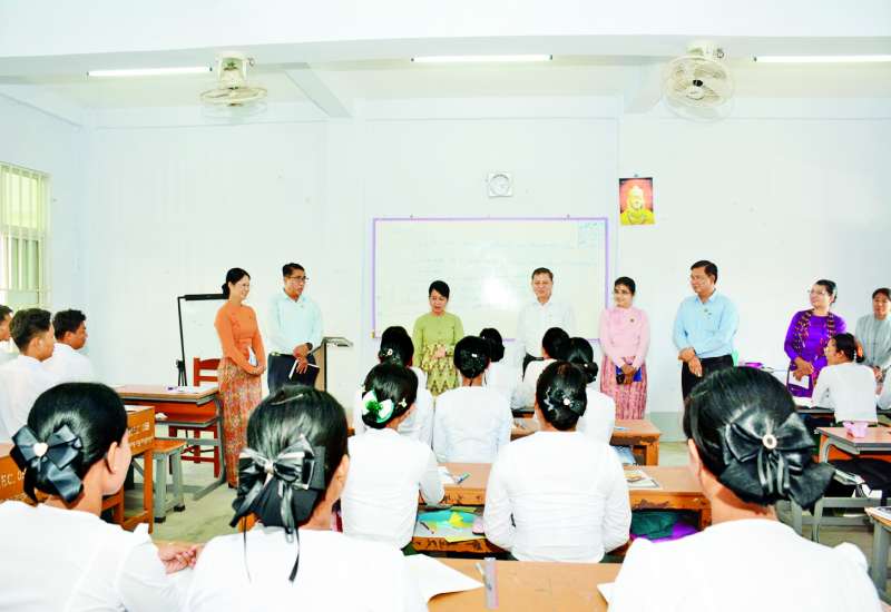 ပညာရေးဝန်ကြီးဌာန ပြည်ထောင်စုဝန်ကြီး ဒေါက်တာချောချောစိန်သည် ဒုတိယဝန်ကြီး ဦးနေမျိုးလှိုင်၊ ညွှန်ကြားရေးမှူးချုပ်များနှင့်အတူ ယနေ့နံနက်ပိုင်းတွင် ကျောက်ဆည်မြို့ အမှတ်(၃)အခြေခံပညာအထက်တန်းကျောင်းနှင့်အမှတ်(၁)အခြေခံပညာအထက်တန်းကျောင်းတို့သို့ ရောက်ရှိပြီး Grade-12 သင် ဆရာ ဆရာမများ၊ ကျောင်းသား မိဘများနှင့် တွေ့ဆုံသည်။