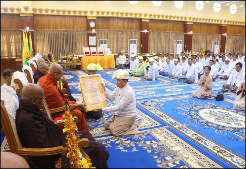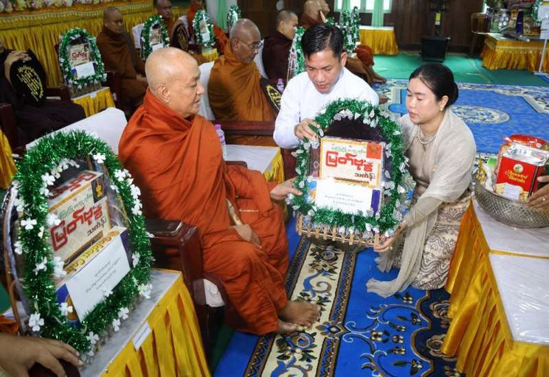 ဗုဒ္ဓဘာသာကလျာဏယုဝအသင်းကြီး (YMBA) (ဗဟို) မှ ရခိုင်ပြည်နယ်အတွင်းရှိ ဆရာတော်ကြီး ၄ ပါးနှင့် လူပုဂ္ဂိုလ် ၃ ဦးတို့အား မင်္ဂလဘွဲ့တံဆိပ်တော်များ ဆက်ကပ်လှူဒါန်းချီးမြှင့်ပွဲမင်္ဂလာကို ယနေ့မွန်းလွဲပိုင်းတွင် ရခိုင်ပြည်နယ်၊ စစ်တွေမြို့ရှိ ပြည်နယ်အစိုးရအဖွဲ့ရုံးခန်းမ၌ ပြုလုပ်ရာ စစ်တွေမြို့၊ နန္ဒာရာမပရိယတ္တိစာသင်တိုက် ပဓာနနာယကဆရာတော် အဂ္ဂမဟာမင်္ဂလဓမ္မဇောတိကဓဇ၊ အဂ္ဂမဟာပဏ္ဍိတ၊ အဘိဓဇမဟာရဋ္ဌဂုရု ဘဒ္ဒန္တနန္ဒာသီရိ အမှူးပြုသော သံဃာတော်များ ကြွရောက်တော်မူကြပြီး ပြည်နယ်ဝန်ကြီးချုပ် ဦးထိန်လင်း၊ အနောက်ပိုင်းတိုင်းစစ်ဌာနချုပ် တိုင်းမှူး ဗိုလ်ချုပ်ကျော်စွာဦးနှင့် အဖွဲ့ဝင်များ၊ ဗုဒ္ဓဘာသာကလျာဏယုဝအသင်းကြီး (YMBA) (ဗဟို) ဥက္ကဋ္ဌနှင့် အဖွဲ့ဝင်များ၊ ဌာနဆိုင်ရာ တာဝန်ရှိသူများနှင့် မြို့မိ/ မြို့ဖများ တက်ရောက်ကြသည်။