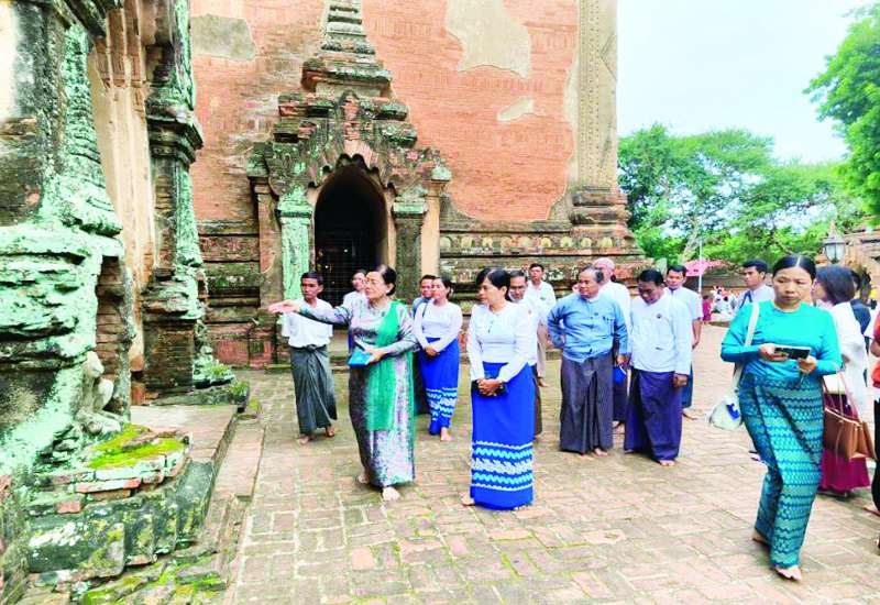 သာသနာရေးနှင့်ယဉ်ကျေးမှုဝန်ကြီးဌာန ဒုတိယဝန်ကြီး ဒေါ်နုမြဇံသည် ယနေ့နံနက်ပိုင်းတွင် ပုဂံယဉ်ကျေးမှုအမွေအနှစ်ဒေသရှိ ရွှေစည်းခုံစေတီတော်မြတ်ကြီး၊ ထီးလိုမင်းလိုဘုရားနှင့် သိကြားပုန်းဘုရားများအား ဖူးမြော်ကြည်ညို၍ သိကြားပုန်းဘုရားရှိ တိုက်မနှင့် အာရုံခံများတွင် ဗုဒ္ဓဝင်ခန်းများနှင့် ဗုဒ္ဓရုပ်ပွားတော်များ ထည့်သွင်းပူဇော်ထားမှု၊ သိကြားပုန်းဘုရားအနီး ပျိုးခြံတည်ဆောက်ခြင်း၊ ရင်ပြင်တိုးချဲ့ခြင်းနှင့် ရှေးဟောင်းအဆောက်အအုံနှင့် ရှေးဟောင်းနေရာဒေသ မြင်ကွင်းမထိခိုက်စေဘဲ ဒေသမျိုးရင်းပင်များဖြစ်သည့် မန်ကျည်းပင်၊ ထန်းပင်များ စိုက်ပျိုးထားရှိမှုကို ကြည့်ရှုစစ်ဆေးသည်။