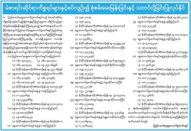 မဲစာရင်းဆိုင်ရာကိစ္စရပ်များနှင့်စပ်လျဉ်း၍ စုံစမ်းမေးမြန်းခြင်းနှင့် သတင်းပို့ခြင်းပြုလုပ်နိုင်