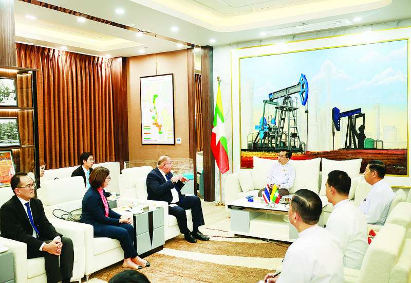 စွမ်းအင်ဝန်ကြီးဌာန ပြည်ထောင်စုဝန်ကြီး ဦးကိုကိုလွင်သည် စွမ်းအင်ဝန်ကြီးဌာနနှင့် အကျိုးတူပူးပေါင်းဆောင်ရွက်လျက်ရှိသည့် ထိုင်းနိုင်ငံ PTTEP Inter-national Limited ၏ အမှုဆောင်အရာရှိချုပ်နှင့် မြန်မာနိုင်ငံနှင့်ပူးပေါင်းဆောင်ရွက်လျက်ရှိသော ကမ်းလွန်စီမံကိန်းများနှင့်စပ်လျဉ်း၍ ယနေ့နံနက်ပိုင်းတွင် နေပြည်တော်ရှိ စွမ်းအင်ဝန်ကြီးဌာန ရေနံ့သာဧည့်ခန်းမ၌ တွေ့ဆုံဆွေးနွေးသည်။