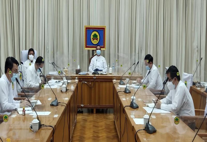ကိုဗစ် - ၁၉ ရောဂါ ကာကွယ်၊ ထိန်းချုပ်၊ ကုသရေးဆိုင်ရာ ပဉ္စမအကြိမ် ညှိနှိုင်း အစည်းအဝေးကို ယနေ့နံနက်ပိုင်းတွင် နေပြည်တော်ရှိ ဘုရင့်နောင်ရိပ်သာ အစည်းအဝေး ခန်းမ၌ ကျင်းပပြုလုပ်ရာ နိုင်ငံတော်စီမံအုပ်ချုပ်ရေးကောင်စီ ဥက္ကဋ္ဌ ဗိုလ်ချုပ်မှူးကြီး မင်းအောင်လှိုင် တက်ရောက် အမှာစကား ပြောကြားသည်။