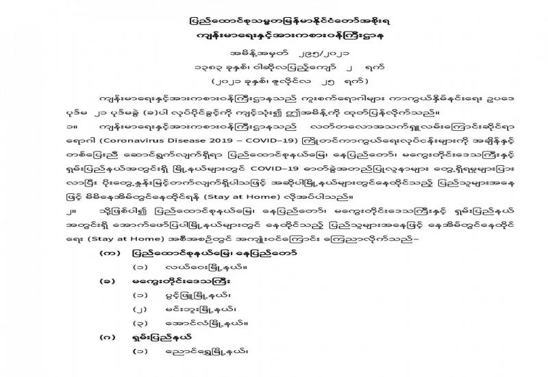 မြန်မာ့အသံနှင့်ရုပ်မြင်သံကြားမှ ဇူလိုင် ၂၄ ရက် ည ၈ နာရီ သတင်းအပြီးတွင် ထုတ်လွှင့်ပြသခဲ့သည့် ကိုဗစ်-၁၉ ရောဂါ ကာကွယ်ထိန်းချုပ်ရေးဆိုင်ရာ ဆောင်ရွက်ချက်များအကြောင်း သိကောင်းစရာ အစီအစဉ်ကို ပြည်သူများ သိရှိနိုင်ရန်အတွက် ပြန်လည် ဖော်ပြလိုက်ပါသည်။