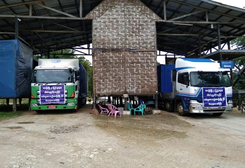 ရှမ်းပြည်နယ်(အရှေ့ပိုင်း)၊ ကိုဗစ်-၁၉ ရောဂါ ကာကွယ်၊ ထိန်းချုပ်၊ ကုသရေး ကော်မတီ၏ စီစဉ်မှုဖြင့် ဝယ်ယူသည့် အောက်ဆီဂျင် ၄၀ လီတာအိုး အလုံး (၁၀၀) သယ်ဆောင်လာသည့် မော်တော်ယာဉ်သည် မိုင်းလားနယ်စပ်မှ ကျိုင်းတုံမြို့သို့ ယမန်နေ့ ည ၉ နာရီက ရောက်ရှိခဲ့ရာ ပြည်နယ်စီမံအုပ်ချုပ်ရေး အဖွဲ့ခွဲ (ရှမ်းအရှေ့)ဥက္ကဋ္ဌ ဦးရဲနိုင်နှင့် တာဝန်ရှိသူများက ကြိုဆို လက်ခံရယူ ကြကြောင်း သိရသည်။