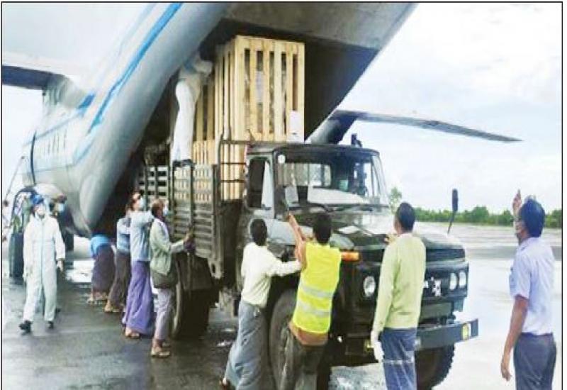 ကျန်းမာရေးနှင့်အားကစားဝန်ကြီးဌာန၊ ပြည်သူ့ကျန်းမာရေးဦးစီးဌာနက ချင်းပြည်နယ် ပြည်သူ့ကျန်းမာရေးဦးစီးဌာနအတွက် ပေးပို့သည့် ကိုဗစ်-၁၉ ရောဂါကာကွယ်၊ ထိန်းချုပ်၊ ကုသရေးလုပ်ငန်းများတွင် အသုံးပြုမည့်ပစ္စည်းများကို နေပြည်တော်လေဆိပ်မှ ကလေးမြို့ သို့လည်းကောင်း၊ ကိုဗစ်-၁၉ ရောဂါ ကာကွယ်၊ ထိန်းချုပ်၊ ကုသရေးလုပ်ငန်းများအတွက် လိုအပ်သော အောက်ဆီဂျင်စက်ပစ္စည်း များကို ရန်ကုန်မြို့၊ မင်္ဂလာဒုံလေတပ်စခန်းဌာနချုပ်မှ ဟားခါး၊ မင်းတပ်၊ ခန္တီး၊ သံတွဲမြို့များသို့ လည်းကောင်း ယနေ့နံနက်ပိုင်းတွင် တပ်မတော်လေယာဉ်များဖြင့် အသီးသီး ပို့ဆောင်ပေးခဲ့သည်။