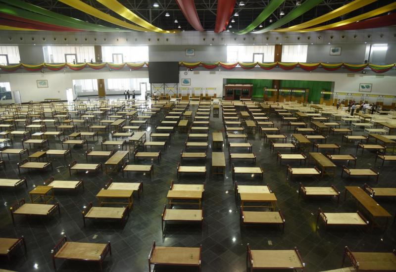 နေပြည်တော်ရှိ မဏိရတနာကျောက်စိမ်းခန်းမ၍ ကိုဗစ်-၁၉ အတည်ပြုလူနာများ ထားရှိရန် ခုတင် ၁၅၀၀ ပြင်ဆင်လျက်ရှိ
