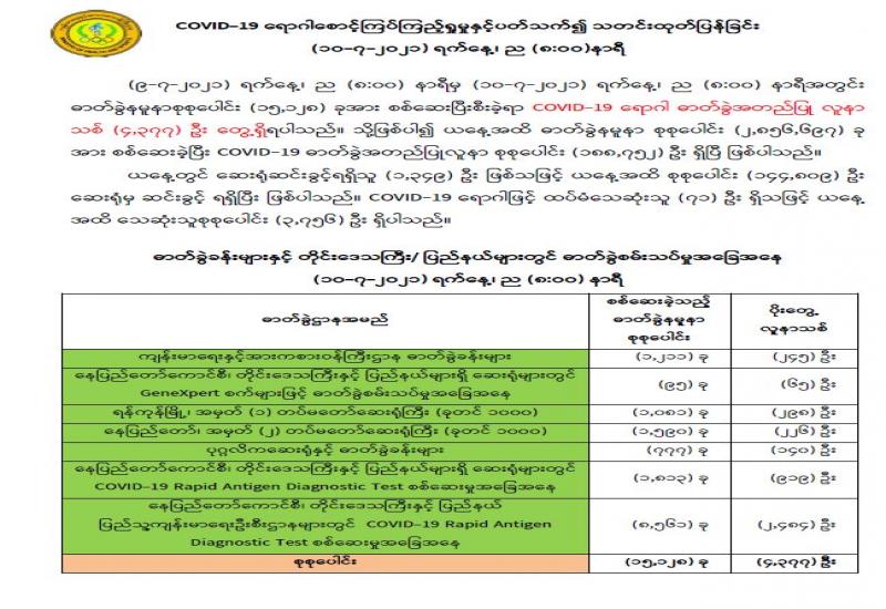 (၂၀၂၁ ခုနှစ်၊ ဇူလိုင်လ (၁၀)ရက်နေ့ညနေ(၄:၀၀)နာရီအချိန် ထုတ်ပြန်ချက်)