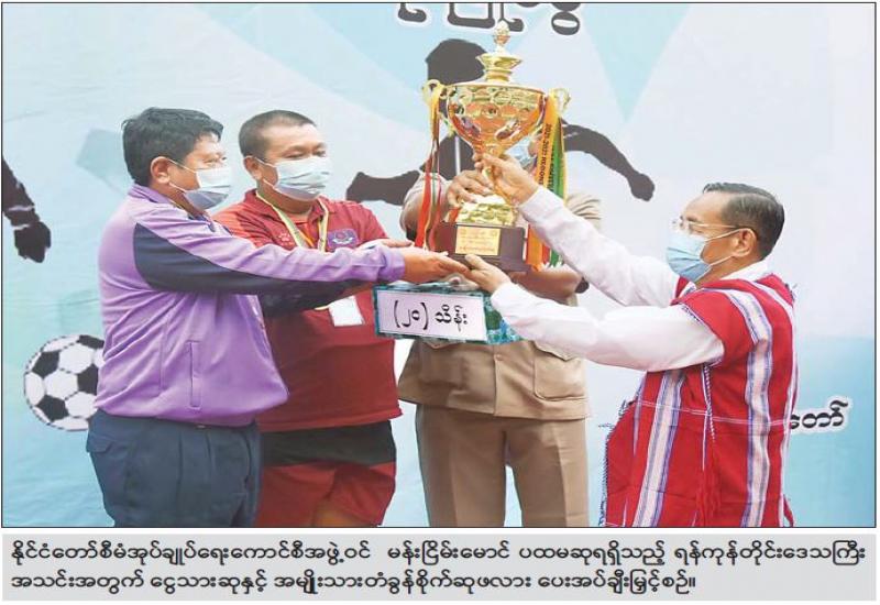 ကျန်းမာရေးနှင့်အားကစားဝန်ကြီးဌာန၊ အားကစားနှင့် ကာယပညာဦးစီးဌာနနှင့် မြန်မာနိုင်ငံဘောလုံး အဖွဲ့ချုပ်တို့ ပူးပေါင်းကျင်းပသည့် ၂၀၂၁ ခုနှစ် တိုင်းဒေသကြီးနှင့် ပြည်နယ် အသက် (၂၁) နှစ်အောက် အမျိုးသားဘောလုံးပြိုင်ပွဲ ဗိုလ်လုပွဲနှင့် ဆုချီးမြှင့်ပွဲ အခမ်းအနားကို ယနေ့မွန်းလွဲ ၃ နာရီတွင် နေပြည်တော်ရှိ ဝဏ္ဏသိဒ္ဓိဘောလုံးအားကစားကွင်း၌ ကိုဗစ်-၁၉ ကာကွယ်၊ ထိန်းချုပ်ရေး စည်းမျဉ်း၊ စည်းကမ်းများနှင့်အညီ ကျင်းပသည်။