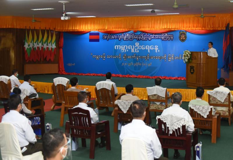 COVID-19 ရောဂါ ကာကွယ်၊ ထိန်းချုပ်၊ ကုသရေးဆိုင်ရာ ညှိနှိုင်းအစည်းအဝေးကို ယနေ့မွန်းလွဲပိုင်းတွင် နေပြည်တော်ရှိ ကာကွယ်ရေးဦးစီးချုပ်ရုံး(ကြည်း)၊ အစည်း အဝေးခန်းမ၌ ကျင်းပပြုလုပ်ရာ နိုင်ငံတော်စီမံအုပ်ချုပ်ရေးကောင်စီဥက္ကဋ္ဌ တပ်မတော် ကာကွယ်ရေးဦးစီးချုပ် ဗိုလ်ချုပ်မှူးကြီးမင်းအောင်လှိုင် တက်ရောက် အမှာစကား ပြောကြားသည်။