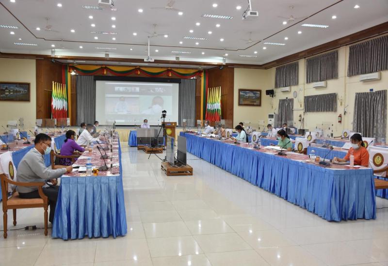 ကိုဗစ်-၁၉ ရောဂါ ကာကွယ်ကုသရေးလုပ်ငန်း ညှိနှိုင်းအစည်းအဝေးကို ယနေ့ နံနက် (၁၀) နာရီ တွင် ကျန်းမာရေးနှင့် အားကစားဝန်ကြီးဌာန COVID-19 Command Center ၌ ဗီဒီယို ကွန်ဖရင့်စနစ်ဖြင့် ကျင်းပရာ ကျန်းမာရေးနှင့် အားကစားဝန်ကြီးဌာန ပြည်ထောင်စုဝန်ကြီး ဒေါက်တာသက်ခိုင်ဝင်း တက်ရောက်ဆွေးနွေးသည်။