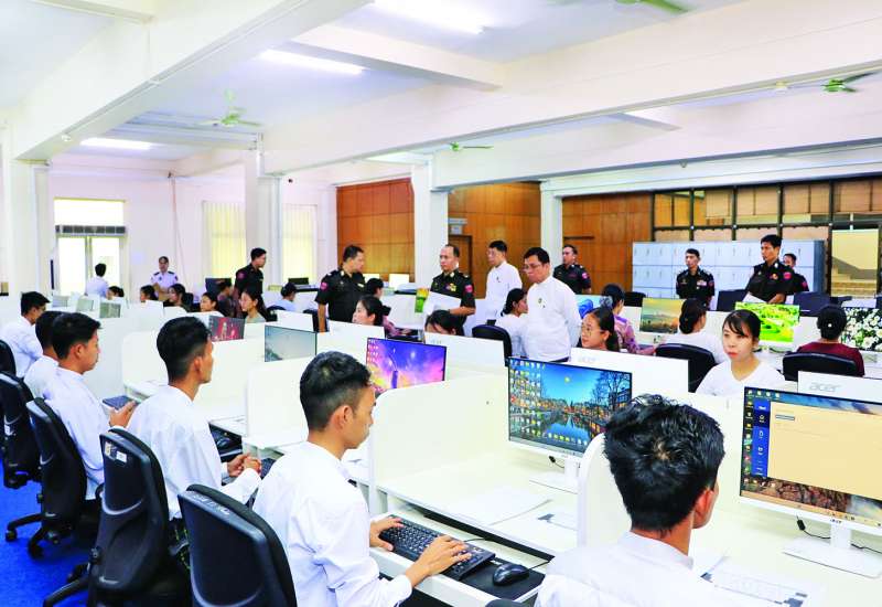 လူဝင်မှုကြီးကြပ်ရေးနှင့် ပြည်သူ့အင်အားဝန်ကြီးဌာန ပြည်ထောင်စုဝန်ကြီး ဦးမြင့်ကြိုင်သည် ဒုတိယဝန်ကြီး ဦးဌေးလှိုင်၊ တာဝန်ရှိသူများနှင့်အတူ ယနေ့နံနက်ပိုင်းတွင် နေပြည်တော်ရှိ သတ်မှတ်နေရာများ၌ ကျင်းပလျက်ရှိသည့် လက်ထောက်လူဝင်မှုကြီးကြပ်ရေးမှူးရာထူးအတွက် ကွန်ပျူတာဆန်းစစ်မှုနှင့် လူတွေ့နှုတ်ဖြေ ဖြေဆိုဆောင်ရွက်နေမှုကို လှည့်လည်ကြည့်ရှုအားပေးပြီး ကွန်ပျူတာဆန်းစစ်ဖြေဆိုရာတွင် စက်များချွတ်ယွင်းမှုမရှိစေရေးနှင့် မေးမြန်းသည့်မေးခွန်းများအပေါ် နားလည်သဘောပေါက်မှုရှိစေရေး စောင့်ကြပ်ကြည့်ရှုဆောင်ရွက်ပေးရန်မှာကြားကာ လိုအပ်သည်များညှိနှိုင်းဆောင်ရွက်ပေးသည်။