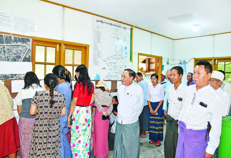 ပြည်ထောင်စုရွေးကောက်ပွဲကော်မရှင်အဖွဲ့ဝင် ဦးမျိုးလှိုင်သည် ယနေ့နံနက်ပိုင်းတွင် တာဝန်ရှိသူများနှင့်အတူ ပြည်ထောင်စုနယ်မြေ နေပြည်တော်ဥတ္တရသီရိမြို့နယ်နှင့် ပုဗ္ဗသီရိမြို့နယ်အတွင်း ၂၀၂၅ ခုနှစ်၊ အထွေထွေရွေးကောက်ပွဲအတွက် မဲစာရင်းများ ပထမအကြိမ်ကြေညာထားမှုအား လှည့်လည်ကြည့်ရှုအားပေးသည်။