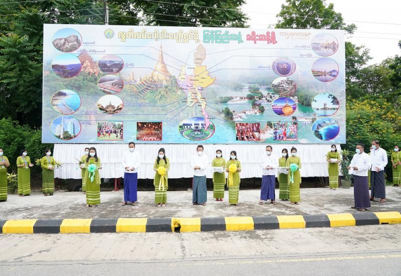 ယနေ့ အမျိုးသားခရီးသွားလုပ်ငန်း ဖွံ့ဖြိုးတိုးတက်ရေးဗဟိုကော်မတီ ပထမအကြိမ် အစည်းအဝေးကို ဂုဏ်ပြုကြိုဆိုခြင်း၊ ပြည်တွင်းခရီးသွားလုပ်ငန်း ပြန်လည်စတင်ခြင်း အထိမ်းအမှတ်နှင့် မြန်မာနိုင်ငံ ခရီးစဉ်ဒေသများ၏ ဆွဲဆောင်မှုများကို ပြည်သူများသိရှိပြီး လည်ပတ်နိုင်ရေး အသိပေး ဆောင်ရွက်သည့် အနေဖြင့် “လွတ်လပ်ပေါ့ပါးပျော်ရွှင်ဖို့ မြန်ပြည်အနှံ့ ခရီးဆန့်စို့” ခရီးသွားမြှင့်တင်ရေး Billboard ဖွင့်ပွဲအခမ်းအနားကို ယနေ့နံနက်ပိုင်းတွင် ဟိုတယ်နှင့်ခရီးသွားလာရေးဝန်ကြီးဌာန ဆိုင်းဘုတ်ရှေ့တွင် ကိုဗစ်-၁၉ စည်းမျဉ်းစည်းကမ်းနှင့်အညီ ကျင်းပသည်။