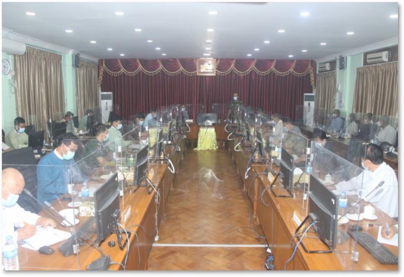 နိုင်ငံတော်စီမံအုပ်ချုပ်ရေးကောင်စီ စီမံခန့်ခွဲရေးကော်မတီ အစည်းအဝေး(၉/၂၀၂၁)ကို ယနေ့နံနက်ပိုင်းတွင် နေပြည်တော်ရှိ နိုင်ငံတော်စီမံအုပ်ချုပ်ရေးကောင်စီ ဥက္ကဋ္ဌရုံး အစည်းအဝေးခန်းမ၌ကျင်းပရာ နိုင်ငံတော်စီမံအုပ်ချုပ်ရေး ကောင်စီဥက္ကဋ္ဌ၊ တပ်မတော်ကာကွယ်ရေးဦးစီးချုပ် ဗိုလ်ချုပ်မှူးကြီးမင်းအောင်လှိုင် တက်ရောက် အမှာ စကား ပြောကြားသည်။
