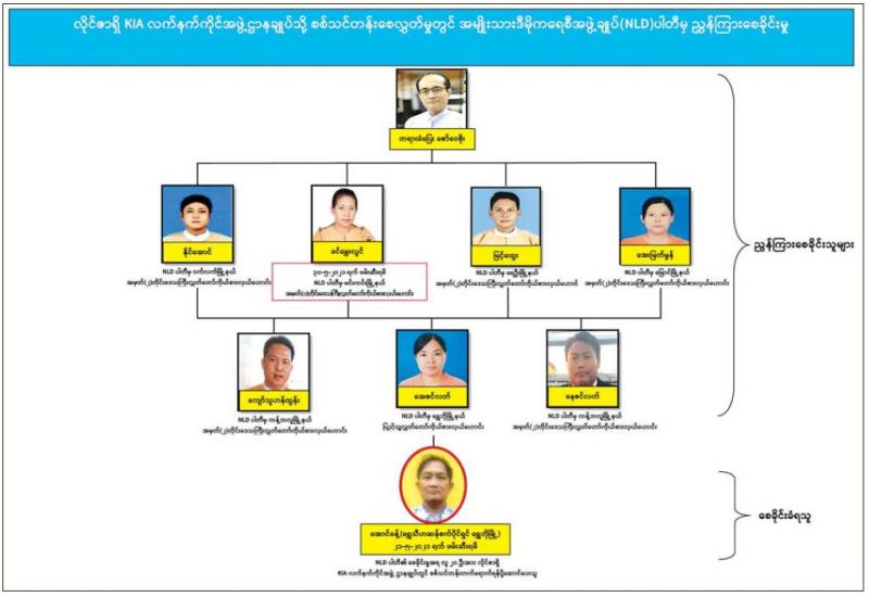 လိုင်ဇာရှိ KIA လက်နက်ကိုင်အဖွဲ့ဌာနချုပ်သို့ စစ်သင်တန်းစေလွှတ်ခဲ့မှု၊ ဖောက်ခွဲရေး ပစ္စည်းများ ပြုလုပ်ရာ၌ ပါဝင်မှုတို့နှင့်ဆက်စပ်၍ အောင်ခန့်(ရွှေသီဟ ဆန်စက်ပိုင်ရှင်၊ ရွှေဘိုမြို့နေထိုင်သူ)အား ၂၁-၅-၂၀၂၁ ရက်တွင် ဖမ်းဆီးရမိခဲ့ပါသည်။