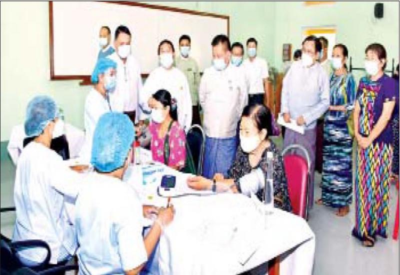 မန္တလေးတိုင်းဒေသကြီး စီမံအုပ်ချုပ်ရေးကောင်စီ ဥက္ကဋ္ဌ ဦးမောင်ကိုသည် ယနေ့နံနက်ပိုင်းတွင် မန္တလေးတက္ကသိုလ်မှ ဆရာ ဆရာမများနှင့် ပညာရေးဝန်ထမ်းများအား ကိုဗစ်-၁၉ ရောဂါ ကာကွယ်ဆေး (ပထမအကြိမ်) ထိုးနှံပေးရန် ဆရာ ဆရာမများနှင့် ပညာရေးဝန်ထမ်းများကို ကာကွယ် ဆေးမထိုးမီ ကျန်းမာရေးစစ်ဆေးပေးနေမှု၊ ကာကွယ် ဆေးထိုးနှံပေးနေမှုများကို လိုက်လံကြည့်ရှုအားပေး ရာ တိုင်းဒေသကြီး ပြည်သူ့ကျန်းမာရေးနှင့် ကုသရေး ဦးစီးမှူးနှင့် မန္တလေးတက္ကသိုလ် ပါမောက္ခချုပ်တို့က ကာကွယ်ဆေး ထိုးနှံနေမှုများကို လိုက်လံရှင်းလင်း ပြသသည်။