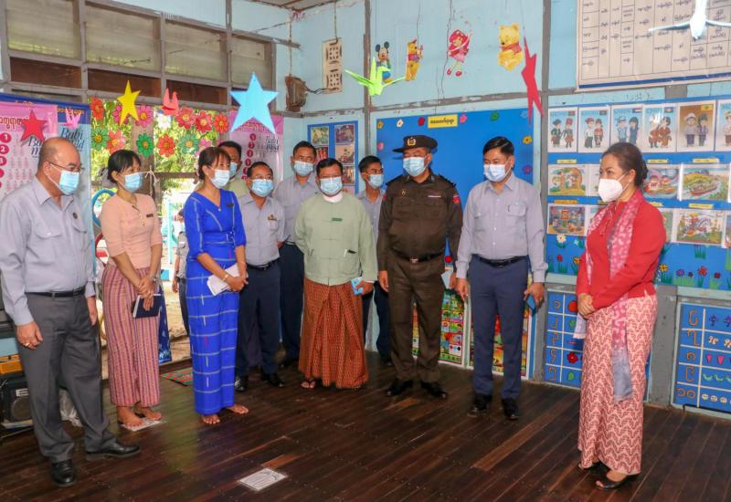 လူမှုဝန်ထမ်းကယ်ဆယ်ရေးနှင့် ပြန်လည်နေရာချထားရေးဝန်ကြီးဌာန ပြည်ထောင်စုဝန်ကြီး ဒေါက်တာသက်သက်ခိုင်သည် ဇွန် ၁၁ ရက် မွန်းလွဲပိုင်းတွင် ပဲခူးတိုင်းဒေသကြီး၊ ပန်းတောင်း မြို့၊ မင်းရပ်ရပ်ကွက်ရှိ အမျိုးသားသဘာဝဘေးအန္တရာယ်ဆိုင်ရာ စီမံခန့်ခွဲမှုရန်ပုံငွေ ငွေကျပ် သန်း (၁၀၀) ဖြင့် “Marked Panorama Co., Ltd” က တင်ဒါအောင်မြင် ဆောက်လုပ်ပြီး စီးခဲ့သော အလျားပေ (၉၀) ၊ အနံပေ (၃၀) ၊ အမြင့် (၁၈)ပေရှိ Cyclone Shelter ဆောက်လုပ် ထားရှိမှု အခြေအနေကို သွားရောက်ကြည့်ရှုစစ်ဆေးသည်။