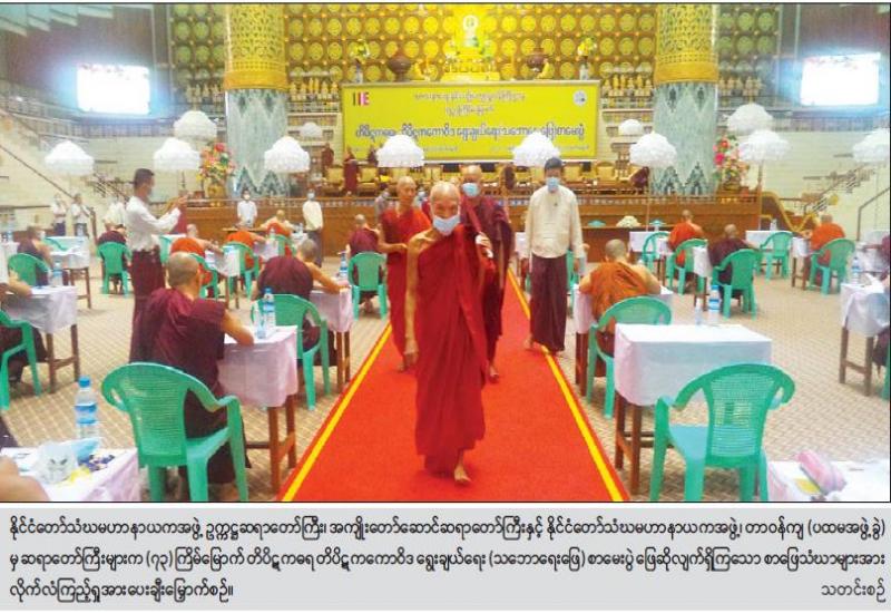 နိုင်ငံတော်သံဃမဟာနာယကအဖွဲ့ ဥက္ကဋ္ဌ အဘိဓဇမဟာရဋ္ဌဂုရု၊ အဘိဓဇအဂ္ဂမဟာ သဒ္ဓမ္မဇောတိက ဒေါက်တာဘဒ္ဒန္တကုမာရာဘိဝံသ(ဗန်းမော်ဆရာတော်)၊ အကျိုးတော်ဆောင် အဂ္ဂမဟာပဏ္ဍိတ၊ အဂ္ဂမဟာ သဒ္ဓမ္မဇောတိကဓဇ ဒေါက်တာဘဒ္ဒန္တစန္ဒိမာဘိဝံသ (သန်လျှင်မင်း ကျောင်းဆရာတော်)နှင့် နိုင်ငံတော်သံဃ မဟာနာယကအဖွဲ့၊ တာဝန်ကျ(ပထမအဖွဲ့ခွဲ)မှ ဒုတိယဥက္ကဋ္ဌ အဂ္ဂမဟာပဏ္ဍိတ ဘဒ္ဒန္တနန္ဒသာရ(သံဖြူဇရပ်)၊ တွဲဖက်အကျိုးတော်ဆောင် ဆရာတော် အဂ္ဂမဟာပဏ္ဍိတ၊ အဂ္ဂမဟာသဒ္ဓမ္မဇောတိကဓဇ ဘဒ္ဒန္တသေဋ္ဌိလ (ပြည်)နှင့် တွဲဖက် အကျိုးတော်ဆောင်ဆရာတော် အဂ္ဂမဟာသဒ္ဓမ္မဇောတိကဓဇ၊ အဂ္ဂမဟာဂန္ထဝါစက ပဏ္ဍိတ၊ ဓမ္မကထိကဗဟုဇန ဟိတဓရ ဒေါက်တာဘဒ္ဒန္တတေဇောသာရာဘိဝံသ (မိုးကုတ်) ဆရာတော်ကြီး တို့သည် သာသနာရေးဦးစီးဌာနမှ တာဝန်ရှိသူများနှင့်အတူ ယနေ့ မွန်းလွဲ (၂)နာရီခွဲတွင် ရန်ကုန်မြို့၊ သီရိမင်္ဂလာ ကမ္ဘာအေးကုန်းမြေ၊ မဟာပါသာဏလိုဏ်ဂူ သိမ်တော်ကြီး၌ (၇၃)ကြိမ်မြောက် တိပိဋကဓရ တိပိဋကကောဝိဒ ရွေးချယ်ရေး (သဘောရေးဖြေ) စာမေးပွဲ ဖြေဆိုလျက်ရှိကြသော စာဖြေသံဃာများအား လိုက်လံကြည့်ရှု အားပေးချီးမြှောက်သည်။