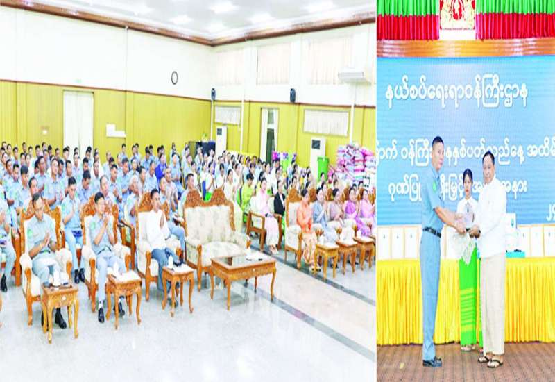 နယ်စပ်ရေးရာဝန်ကြီးဌာန၏ (၃၃) နှစ်မြောက် နှစ်ပတ်လည်နေ့အထိမ်းအမှတ် ဂုဏ်ပြုဆုချီးမြှင့်ပွဲ အခမ်းအနားကို ယနေ့မွန်းလွဲပိုင်းတွင် နယ်စပ်ရေးရာဝန်ကြီးဌာန ဧရာဝတီခန်းမ၌ ကျင်းပရာ နယ်စပ်ရေးရာဝန်ကြီးဌာန ပြည်ထောင်စုဝန်ကြီး ဒုတိယဗိုလ်ချုပ်ကြီး ရာပြည့်နှင့် ဇနီး၊ ဒုတိယဝန်ကြီး ဗိုလ်ချုပ်ဖြိုးသန့်နှင့် ဇနီး၊ အမြဲတမ်းအတွင်းဝန်နှင့် ဇနီး၊ ညွှန်ကြားရေးမှူးချုပ်များနှင့် ဇနီးများ၊ ဝန်ကြီးရုံးနှင့် ဦးစီးဌာနများမှ အရာထမ်း၊ အမှုထမ်းများနှင့် ဂုဏ်ပြုဆုရရှိသည့် ဝန်ထမ်းများ တက်ရောက်သည်။