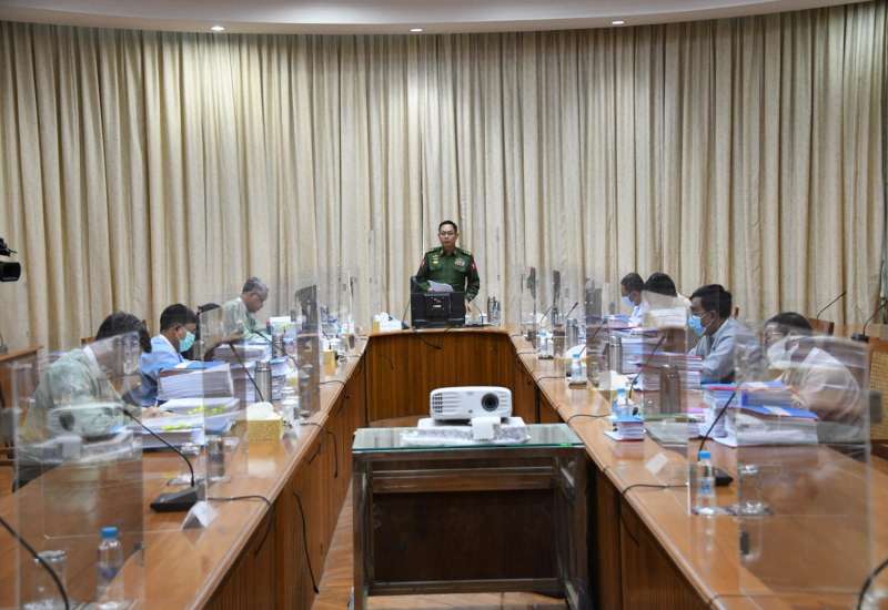 နိုင်ငံတော်စီမံအုပ်ချုပ်ရေးကောင်စီ စီမံခန့်ခွဲရေး ကော်မတီ အစည်းအဝေး (၆/၂၀၂၁) ကို ယနေ့မွန်းလွဲပိုင်းတွင် နေပြည်တော်ရှိ နိုင်ငံတော်စီမံအုပ်ချုပ်ရေး ကောင်စီဥက္ကဋ္ဌရုံး အစည်းအဝေး ခန်းမ၌ ကျင်းပရာ နိုင်ငံတော်စီမံအုပ်ချုပ်ရေးကောင်စီ ဥက္ကဋ္ဌ၊ တပ်မတော်ကာကွယ်ရေးဦးစီးချုပ် ဗိုလ်ချုပ်မှူးကြီး မင်းအောင်လှိုင် တက်ရောက်အမှာစကား ပြောကြားသည်။