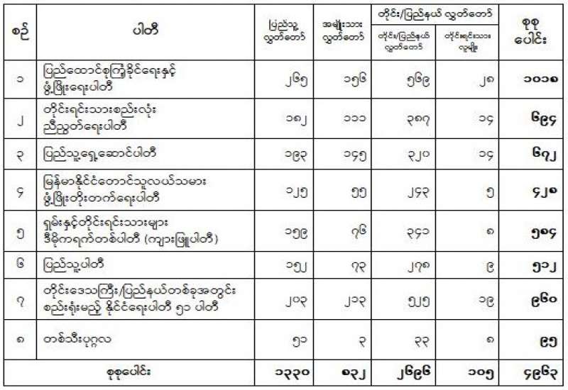 ၂၀၂၅ ခုနှစ်၊ ဒီဇင်ဘာ လ ၂၈ ရက်နေ့တွင် စတင်ကျင်းပမည့် ပါတီစုံဒီမိုကရေစီ အထွေထွေရွေးကောက်ပွဲတွင် ဝင်ရောက်ယှဉ်ပြိုင်ကြမည့် နိုင်ငံရေးပါတီအသီးသီးနှင့် တစ်သီးပုဂ္ဂလ လွှတ်တော်ကိုယ်စားလှယ်လောင်းများအနေဖြင့် လွှတ်တော်ကိုယ်စားလှယ်လောင်း အမည်စာရင်းတင်သွင်းခြင်းကို ၈ - ၉ - ၂၀၂၅ ရက်နေ့မှ ၂၂ - ၉ - ၂၀၂၅ ရက်နေ့အထိ သက်ဆိုင်ရာကော်မရှင်အဖွဲ့ခွဲအသီးသီးတွင် အမည်စာရင်းတင်သွင်းခဲ့ကြရာ နိုင်ငံရေးပါတီ ၅၇ ပါတီနှင့် တစ်သီးပုဂ္ဂလလွှတ်တော်ကိုယ်စားလှယ်လောင်း အပါအဝင် ဝင်ရောက်ယှဉ်ပြိုင်သည့် လွှတ်တော်ကိုယ်စားလှယ်လောင်း စုစုပေါင်း ၄၉၆၃ ဦး အမည်စာရင်း တင်သွင်းခဲ့ကြပါသည်။