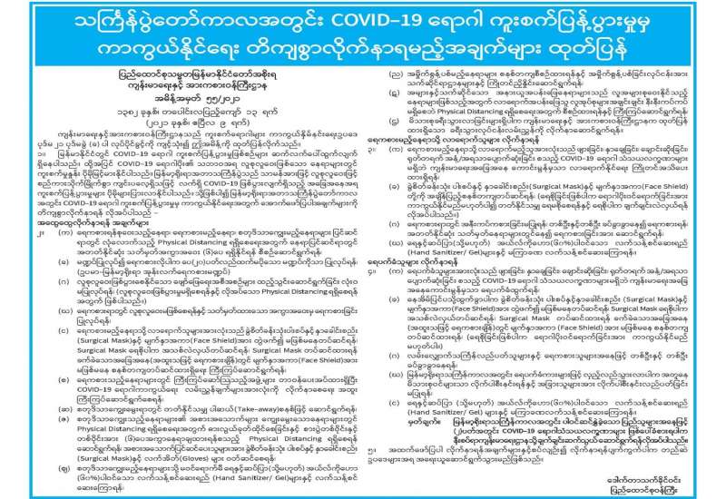 ယနေ့နံနက်(၀၉:၃၀)နာရီအချိန်ထိမိုးလေဝသတိုင်းထွာချက်အကျဉ်းချုပ်။ လွန်ခဲ့သော(၂၄)နာရီအတွင်းက ရှမ်းပြည်နယ်(မြောက်ပိုင်း)တွင် နေရာအနှံ့ အပြား၊ စစ်ကိုင်းတိုင်းဒေသကြီးအထက်ပိုင်း၊ တနင်္သာရီတိုင်းဒေသကြီးနှင့် ရှမ်းပြည်နယ်(တောင်ပိုင်း)တို့တွင် နေရာစိပ်စိပ်၊ ကချင်ပြည်နယ်နှင့် ချင်းပြည်နယ် တို့တွင် နေရာကျဲကျဲနှင့် စစ်ကိုင်းတိုင်းဒေသကြီးအောက်ပိုင်း၊ မန္တလေးတိုင်းဒေသကြီး၊ ပဲခူးတိုင်းဒေသကြီး၊ ရှမ်းပြည်နယ်(အရှေ့ပိုင်း)နှင့် မွန်ပြည်နယ်တို့တွင် နေရာကွက်ကျား မိုးထစ်ချုန်းရွာခဲ့ပြီး၊ ကျန်တိုင်းဒေသကြီးနှင့် ပြည်နယ်တို့တွင် တိမ်အသင့်အတင့် ဖြစ်ထွန်းခဲ့ပါသည်။ နေ့အပူချိန်များမှာ စစ်ကိုင်းတိုင်း ဒေသကြီးအထက်ပိုင်းနှင့် ကချင်ပြည်နယ်တို့တွင် ဧပြီလ၏ ပျမ်းမျှအပူချိန်တို့ထက် (၃)ဒီဂရီစင်တီဂရိတ်နှင့် စစ်ကိုင်းတိုင်းဒေသကြီးအောက်ပိုင်း၊ မန္တလေး တိုင်းဒေသကြီး၊ မကွေးတိုင်းဒေသကြီး၊ ချင်းပြည်နယ်၊ ကရင်ပြည်နယ်နှင့် မွန်ပြည်နယ်တို့တွင် ဧပြီလ၏ ပျမ်းမျှအပူချိန်တို့ထက် (၂)ဒီဂရီစင်တီဂရိတ်ပိုခဲ့ပြီး၊ ကယားပြည်နယ်တွင် ဧပြီလ၏ ပျမ်းမျှအပူချိန်အောက် (၂)ဒီဂရီစင်တီဂရိတ်လျော့နည်းခဲ့ကာ၊ ကျန်တိုင်းဒေသကြီးနှင့် ပြည်နယ်တို့တွင် ဧပြီလ၏ ပျမ်းမျှ အပူချိန်ခန့်သာ ရှိခဲ့ပါသည်။ ထူးခြားသည့် နေ့အပူချိန်များမှာ ချောက်မြို့တွင် (၄၄)ဒီဂရီစင်တီဂရိတ်၊ ဂန့်ဂေါမြို့တွင် (၄၃)ဒီဂရီစင်တီဂရိတ်နှင့် စစ်ကိုင်းမြို့၊ မန္တလေးမြို့၊ မြင်းခြံမြို့၊ ညောင်ဦးမြို့၊ တံတားဦး(လေကြောင်းမိုးလေဝသ)၊ မကွေးမြို့နှင့် ဆင်ဖြူကျွန်းမြို့တို့တွင် (၄၂)ဒီဂရီစင်တီ ဂရိတ်စီတို့ ဖြစ်ကြပါသည်။ မှတ်သားဖွယ်ရာ မိုးရေချိန်များမှာ တမူးတွင် (၀.၈၃)လက်မ၊ မဒေါက်မြို့တွင် (၀.၇၁)လက်မ၊ သီပေါမြို့နှင့် နောင်ချိုမြို့တို့တွင် (၀.၅၀)လက်မစီ၊ လွိုင်လင် မြို့တွင် (၀.၃၅)လက်မ၊ ဖြူးမြို့တွင် (၀.၃၂)လက်မနှင့် ကျောက်မဲမြို့နှင့် မိုးကုတ်မြို့တို့တွင် (၀.၂၇)လက်မစီတို့ ဖြစ်ကြပါသည်။