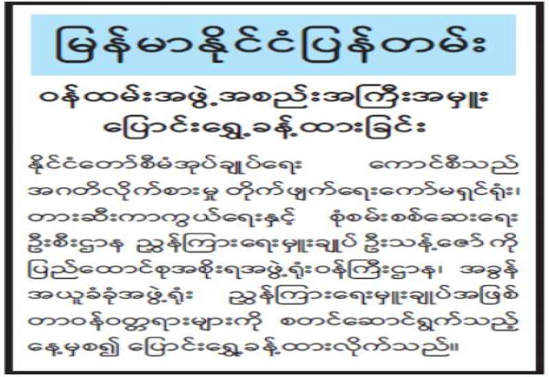 ကိုရီးယားသမ္မတနိုင်ငံ၏တရားဝင်ဖွံ့ဖြိုးမှုအကူအညီ ချေးငွေတို့ဖြင့် အကောင်အထည်ဖော် ဆောင်ရွက် လျက်ရှိ သည့် စီမံကိန်းများ၏လက်ရှိဆောင်ရွက်နေမှု အခြေအနေနှင့် ရှေ့ဆက်လက်ဆောင်ရွက်မည့် အစီအစဉ် တို့နှင့် စပ်လျဉ်းသည့် ညှိနှိုင်းအစည်း အဝေးကို ယနေ့ မွန်းလွဲပိုင်းက ရင်းနှီးမြှုပ်နှံမှုနှင့် နိုင်ငံခြားစီးပွား ဆက်သွယ်ရေး ဝန်ကြီးဌာန၌ ကျင်းပ သည်။
