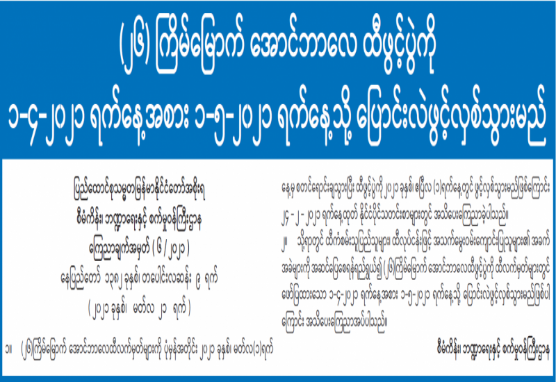 (၂၀၂၁ ခုနှစ်၊ မတ်လ (၂၃)ရက်နေ့ နံနက်(၇:၀၀)နာရီအချိန် ထုတ်ပြန်ချက်)