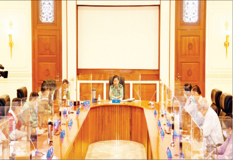 နိုင်ငံတော်စီမံအုပ်ချုပ်ရေးကောင်စီ အစည်းအဝေး(၅/၂၀၂၁)ကို ယနေ့ မွန်းလွဲပိုင်းတွင် နေပြည်တော်ရှိ နိုင်ငံတော်စီမံအုပ်ချုပ်ရေးကောင်စီ ဥက္ကဋ္ဌရုံး အစည်းအဝေး ခန်းမ၌ ကျင်းပရာ နိုင်ငံတော်စီမံအုပ်ချုပ်ရေးကောင်စီဥက္ကဋ္ဌ၊ တပ်မတော်ကာကွယ်ရေးဦးစီးချုပ် ဗိုလ်ချုပ်မှူးကြီး မင်းအောင်လှိုင် တက်ရောက်အမှာစကားပြောကြားသည်။