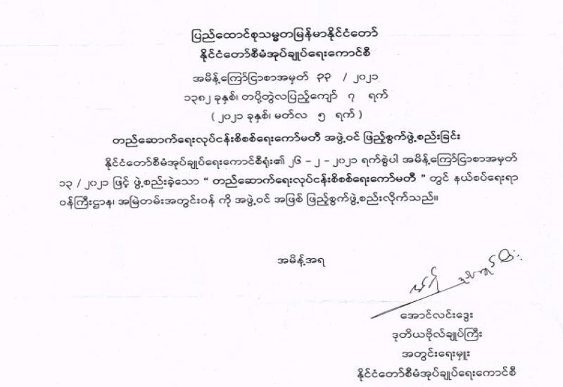 လူမှုဝန်ထမ်း၊ ကယ်ဆယ်ရေးနှင့် ပြန်လည်နေရာချထားရေးဝန်ကြီးဌာန၏ လူမှုဝန်ထမ်း ဦးစီးဌာနနှင့် အစိုးရမဟုတ်သော နိုင်ငံတကာအဖွဲ့အစည်းများအကြား လုပ်ငန်းများ ပူးပေါင်း ဆောင်ရွက်နိုင်ရေးအတွက် လက်မှတ်ရေးထိုးရန် ဆောင်ရွက်လျက်ရှိသည့် နားလည်မှုစာချွန်လွှာ များနှင့်စပ်လျဉ်း၍ ညှိနှိုင်းဆွေးနွေးပွဲကို ယနေ့နံနက်ပိုင်းတွင် အဆိုပါဝန်ကြီးရုံး အစည်းအဝေး ခန်းမ၌ ကျင်းပသည်။
