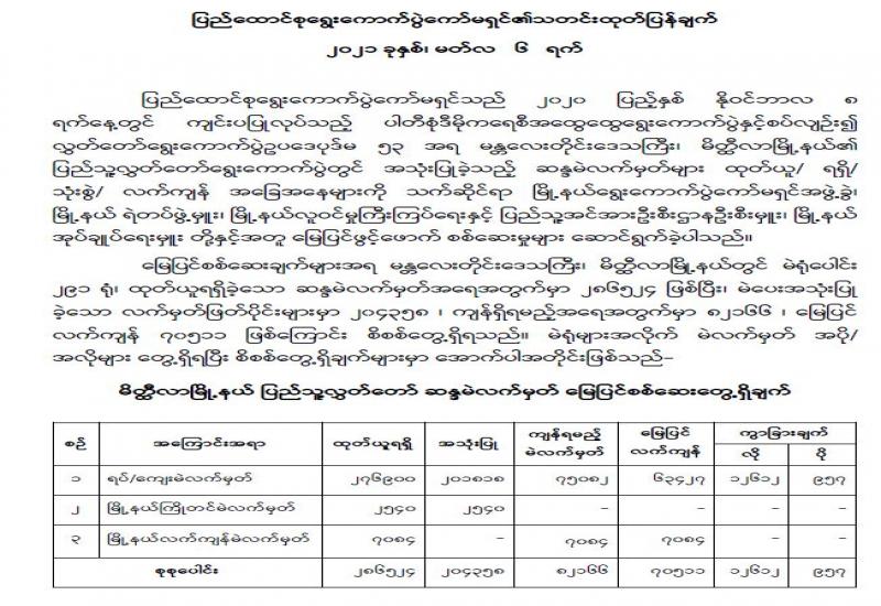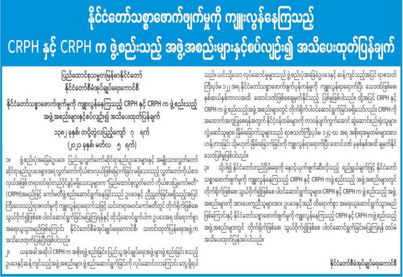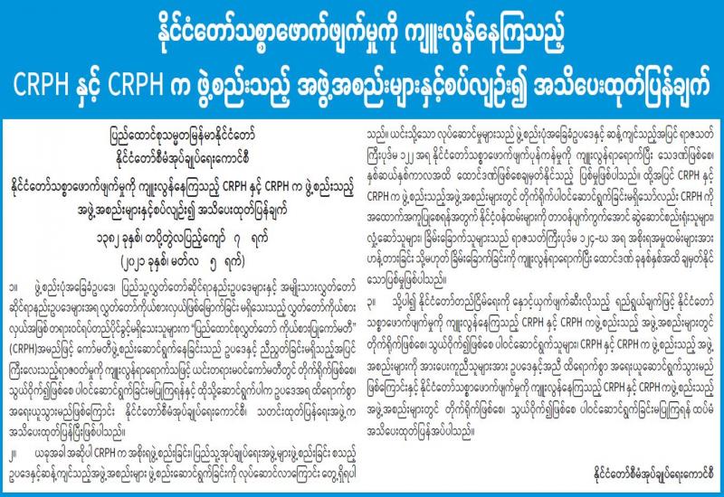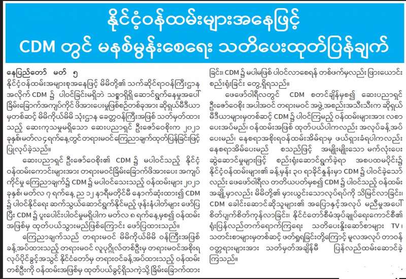 (၂၀၂၁ ခုနှစ်၊ မတ်လ (၆)ရက်နေ့ ည(၇:၀၀)နာရီအချိန် ထုတ်ပြန်ချက်)