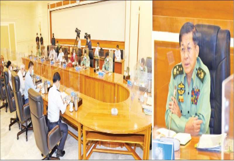 နိုင်ငံတော်စီမံအုပ်ချုပ်ရေးကောင်စီအစည်းအဝေး (၄/၂၀၂၁)ကို ယနေ့မွန်းလွဲပိုင်းတွင် နေပြည်တော်ရှိ နိုင်ငံတော်စီမံအုပ်ချုပ်ရေးကောင်စီဥက္ကဋ္ဌရုံး အစည်းအဝေးခန်းမ၌ ကျင်းပရာ နိုင်ငံတော်စီမံအုပ်ချုပ်ရေးကောင်စီဥက္ကဋ္ဌ၊ တပ်မတော်ကာကွယ်ရေးဦးစီးချုပ် ဗိုလ်ချုပ်မှူးကြီး မင်းအောင်လှိုင် တက်ရောက်အမှာစကား ပြောကြားသည်။