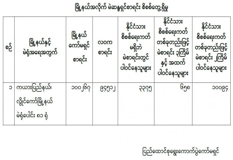 ၂၀၂၁ ခုနှစ်၊ ဖေဖော်ဝါရီလ ၂၈ ရက် ၁။ ပြည်ထောင်စုရွေးကောက်ပွဲကော်မရှင်သည် ၂၀၂၀ ပြည့်နှစ် နိုဝင်ဘာလ ၈ ရက်နေ့တွင် ကျင်းပပြုလုပ်သည့် ပါတီစုံဒီမိုကရေစီအထွေထွေရွေးကောက်ပွဲနှင့်စပ်လျဉ်း၍ ကယားပြည်နယ်၊ လွိုင်ကော်မြို့နယ် ၏ ဆန္ဒမဲပေးမှုများကို စစ်ဆေးခဲ့သည်။ ၂။ စစ်ဆေးတွေ့ရှိချက်များအရ ကယားပြည်နယ်၊ လွိုင်ကော်မြို့နယ်တွင် ယခင် ရွေးကောက်ပွဲကော်မရှင်က ထုတ်ပြန်ကြေညာခဲ့သည့် မဲဆန္ဒရှင်စာရင်းမှာ ၁၀၀၂၆၇ ဦး ဖြစ်ပြီး အလုပ်သမား၊ လူဝင်မှုကြီးကြပ်ရေးနှင့်ပြည်သူ့ အင်အားဝန်ကြီးဌာန၏ ၂၀၂၀ ပြည့်နှစ်၊ နိုဝင်ဘာလ စာရင်းအရ အသက် ၁၈ နှစ် ပြည့်ပြီး ဆန္ဒမဲပေးပိုင်ခွင့်ရှိသူများမှာ ၉၄၅၁၂ ဦး ဖြစ်သည်။ မဲဆန္ဒရှင် စာရင်းများတွင် နို