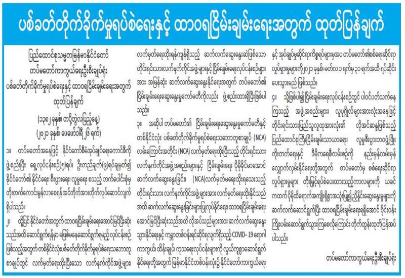 (၂၀၂၁ ခုနှစ်၊ ဖေဖော်ဝါရီလ (၂၇)ရက်နေ့ မွန်းလွဲ (၂:၀၀)နာရီအချိန် ထုတ်ပြန်ချက်)