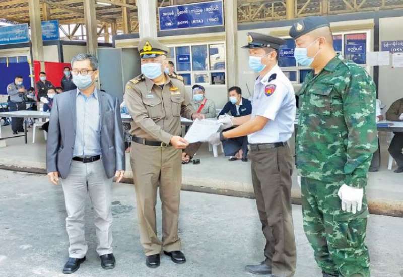 တာချီလိတ်မြို့ မြန်မာ- ထိုင်း ချစ်ကြည်ရေးတံတား အမှတ်(၂) မှတစ်ဆင့် ထိုင်းနိုင်ငံမှ လွှဲပြောင်းပေးလာသော နေရပ်ပြန်မြန်မာရွှေ့ပြောင်း အလုပ်သမားများနှင့် ပြစ်ဒဏ်စေ့ မြန်မာနိုင်ငံသားများကို ယနေ့နံနက်ပိုင်းက မြန်မာတာဝန်ရှိသူများက ပြန်လည်လက်ခံခဲ့ကြသည်။