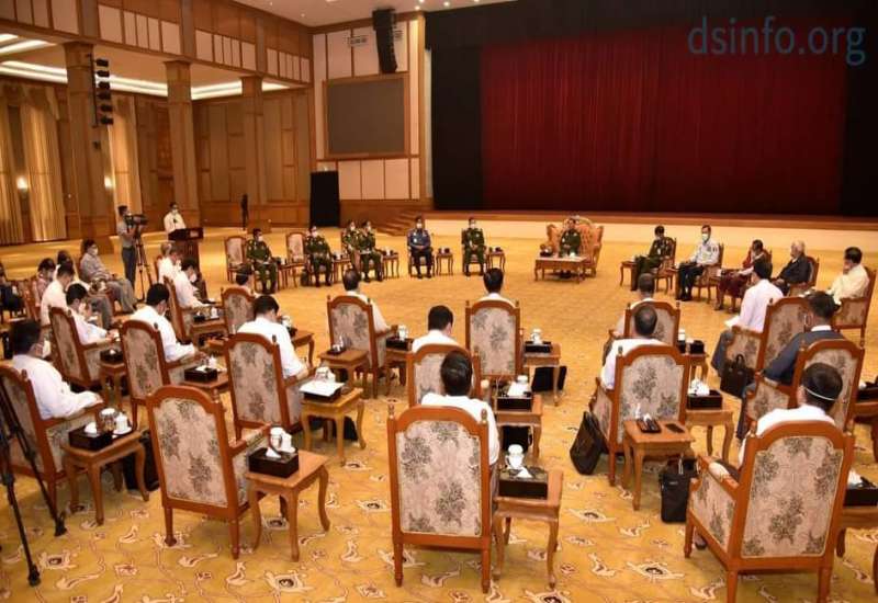 နိုင်ငံတော်စီမံအုပ်ချုပ်ရေးကောင်စီ ဥက္ကဋ္ဌ တပ်မတော်ကာကွယ်ရေးဦးစီးချုပ် ဗိုလ်ချုပ် မှူးကြီး မင်းအောင်လှိုင်သည် ယနေ့ မွန်းလွဲပိုင်းတွင် နေပြည်တော်ရှိ နိုင်ငံတော်သမ္မတ အိမ်တော် အစည်းအဝေးခန်းမ၌ ပြည်ထောင်စုဝန်ကြီးများ၊ ပြည်ထောင်စုအဆင့် အဖွဲ့ အစည်းများမှ တာဝန်ရှိသူများနှင့် တွေ့ဆုံသည်။
