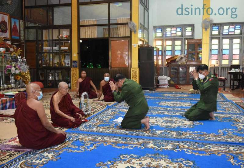 တပ်မတော်ကာကွယ်ရေးဦးစီးချုပ် ဗိုလ်ချုပ်မှူးကြီးမင်းအောင်လှိုင်သည် ယနေ့ ညနေပိုင်းတွင် ကာကွယ်ရေး ဝန်ကြီးဌာန ပြည်ထောင်စုဝန်ကြီး ဗိုလ်ချုပ်ကြီး မြထွန်းဦး နှင့် နေပြည်တော် တိုင်းစစ် ဌာနချုပ် တိုင်းမှူး ဗိုလ်ချုပ် ဇော်မျိုးတင် တို့လိုက်ပါ၍ နေပြည်တော်ကောင်စီနယ်မြေ၊ ပျဉ်းမနားမြို့၊ ဈေးကုန်းကျောင်းတိုက် ပဓာနနာယက ဆရာတော် အဘိဓဇမဟာရဋ္ဌဂုရု ဘဒ္ဒန္တ ကဝိသာရ အား သွားရောက်ဖူးမြော် ကြည်ညိုသည်။