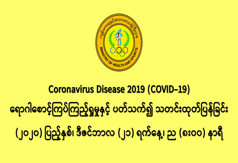 (၂၀-၁၂-၂၀၂၀) ရက်နေ့၊ ည (၈:၀၀) နာရီမှ (၂၁-၁၂-၂၀၂၀) ရက်နေ့၊ ည (၈:၀၀) နာရီ အတွင်း ဓာတ်ခွဲနမူနာ စုစုပေါင်း (၂၁,၀၁၈) ခုအား စစ်ဆေးပြီးစီးခဲ့ရာ COVID-19 ရောဂါ ဓာတ်ခွဲအတည်ပြု လူနာသစ် (၈၄၈) ဦး တွေ့ရှိရပါသည်။