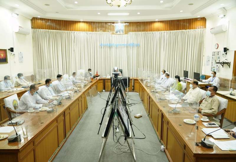 ကျန်းမာရေးနှင့်အားကစားဝန်ကြီးဌာန၊ ပြည်ထောင်စုဝန်ကြီး ဒေါက်တာမြင့်ထွေးသည် ရန်ကုန် တိုင်းဒေသကြီး ဝန်ကြီးချုပ် ဦးဖြိုးမင်းသိန်းနှင့် ရန်ကုန်တိုင်းဒေသကြီး အစိုးရအဖွဲ့ဝင်များကို ယမန်နေ့ ညနေပိုင်းက Videoconferencing စနစ်ဖြင့် ချိတ်ဆက်တွေ့ဆုံပြီး ရန်ကုန် တိုင်းဒေသကြီးတွင် ကိုဗစ်-၁၉ ကာကွယ်ရေးစည်းကမ်းများ တိကျစွာ လိုက်နာဆောင်ရွက်ရေး ကြီးကြပ်ဆောင်ရွက်မည့် အစီအစဉ်များကို ဆွေးနွေးသည်။