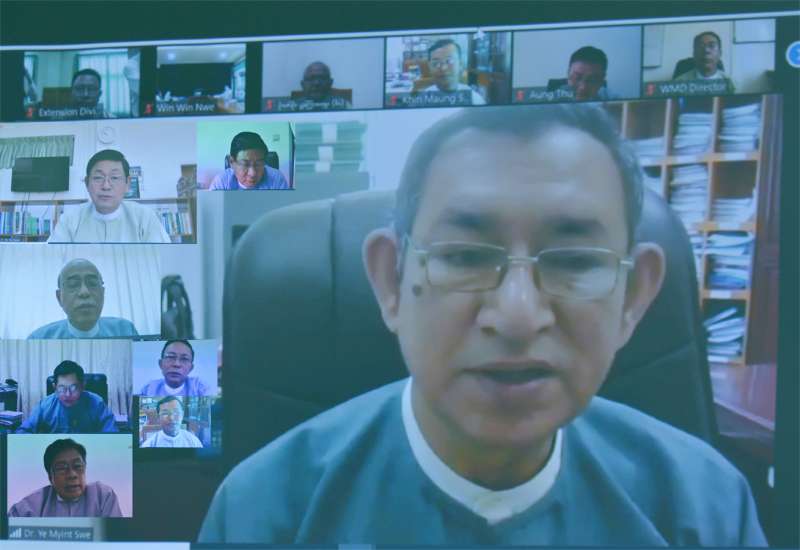 ကိုဗစ်-၁၉ ကာကွယ်ထိန်းချုပ်ကုသရေးလုပ်ငန်းစဉ်များတွင် ပါ၀င်ကြမည့် စေတနာ့ ၀န်ထမ်းများကို ဆင့်ပွား သင်တန်း ပေးခြင်းနှင့် အားပေးစကား ပြောကြားခြင်း အစီစဉ်ကိုယနေ့နံ နက်ပိုင်းတွင် Online စနစ်ဖြင့် ကျင်းပ သည်။