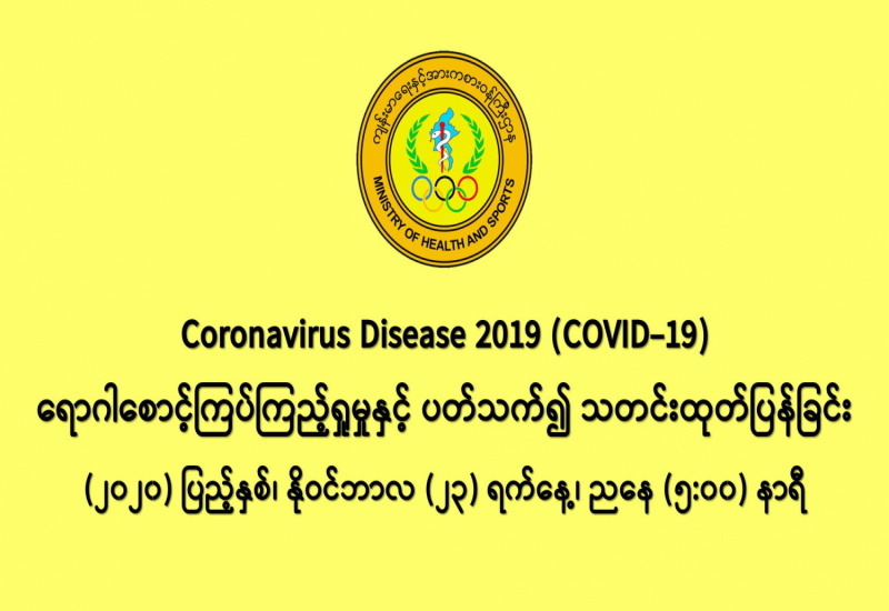 (၂၂-၁၁-၂၀၂၀) ရက်နေ့၊ ည (၈:၀၀) နာရီမှ (၂၃-၁၁-၂၀၂၀) ရက်နေ့၊ ည (၈:၀၀) နာရီ အတွင်း ဓာတ်ခွဲနမူနာ စုစုပေါင်း (၁၈,၂၁၂) ခုအား စစ်ဆေးပြီးစီးခဲ့ရာ COVID-19 ရောဂါ ဓာတ်ခွဲအတည်ပြု လူနာသစ် (၁,၂၅၉) ဦး တွေ့ရှိရပါသည်။