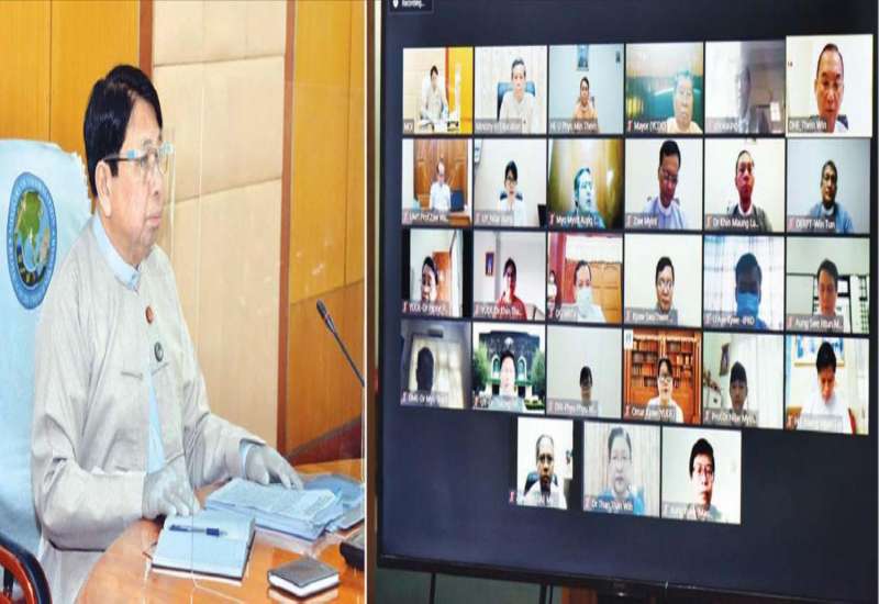 အမျိုးသားကျန်းမာရေးစီမံကိန်း (၂၀၁၇-၂၀၂၁) အကောင်အထည်ဖော်ခြင်း ဆန်းစစ်သုံးသပ်မှု တင်ပြ ဆွေးနွေးခြင်း အစည်းအဝေးကို ယနေ့ နံနက်ပိုင်းတွင် ဗီဒီယိုကွန်ဖရင့် စနစ်ဖြင့် ကျန်းမာရေး နှင့် အားကစားဝန်ကြီးဌာန၌ ကျင်းပသည်။
