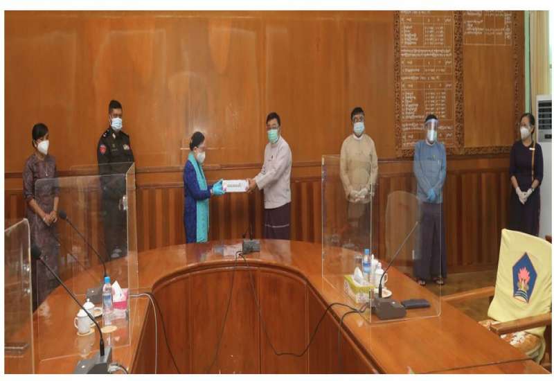 တိုင်းရင်းသားလူမျိုးများရေးရာ ဝန်ကြီးဌာန မိသားစုတို့က ငွေကျပ်သိန်း (၃၀) တန်ဖိုးရှိ ရေခဲသေတ္တာ(၁)လုံးနှင့် လေအေးပေးစက် (၄)လုံးတို့ကို နေပြည်တော် ပြည်သူ့ဆေးရုံကြီး (ခုတင်-၁၀၀၀)ရှိ COVID-19 ICU အခန်းအတွက်နှင့် နေပြည်တော် ပြည်သူ့ဆေးရုံကြီး (ခုတင်-၁၀၀၀)၊ နေပြည်တော် ပြည်သူ့ဆေးရုံကြီး (ခုတင်-၃၀၀)၊ မျက်စိ၊ နား၊ နှာခေါင်း၊ လည်ချောင်း၊ ဦးခေါင်းနှင့် လည်ပင်းခွဲစိတ်အထူးကုဆေးရုံကြီးနှင့် သွားရောဂါအထူးကုဆေးရုံကြီးတို့၌ တာဝန်ထမ်းဆောင် လျက်ရှိသော ကျန်းမာရေးဝန်ထမ်းများနှင့် လူနာများအတွက် စိန်ဟင်္သာ ရိပ်မွန်ကုမ္ပဏီလီမိတက်မှ ထုတ်လုပ်သော ငွေကျပ် (၃၃) သိန်းခန့် တန်ဖိုးရှိ ထမင်းဘူးနှင့် စည်သွပ်ဘူးများ ပေးအပ် လှူဒါန်းခြင်း အခမ်းအနားကို ယမန်နေ့ နံနက်ပိုင်းက နေပြည်တော် ပြည်သူ့ဆေးရုံကြီး (ခုတင်-၁၀၀၀)ရှိ အစည်းအဝေးခ န်းမဆောင်-၂ ၌ ကျင်းပပြုလုပ်သည်။