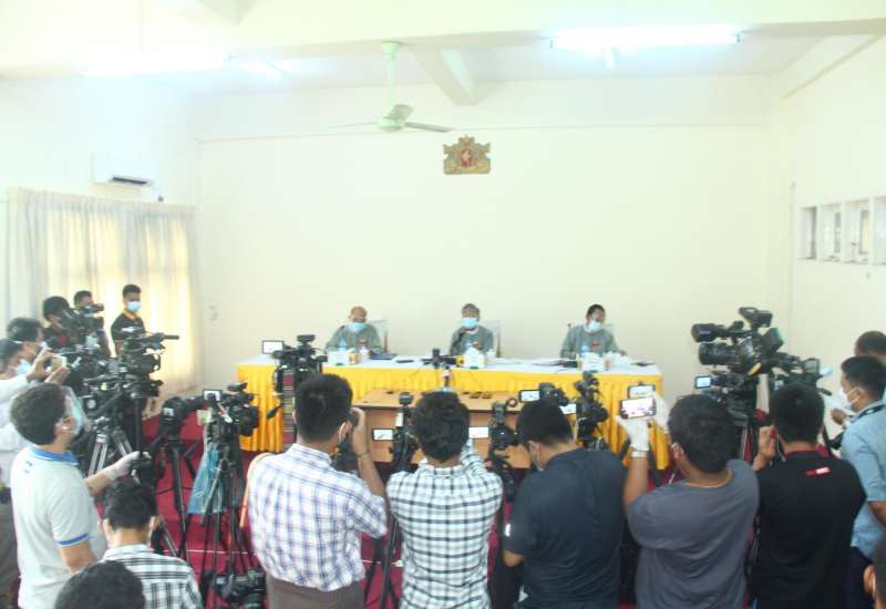 ပြည်ထောင်စုရွေးကောက်ပွဲကော်မရှင်၊ သတင်းထုတ်ပြန်ရေးအဖွဲ့၏ ရွေးကောက်ပွဲနှင့် စပ်လျဉ်းသည့်သတင်းများ ထုတ်ပြန်သည့်အစီအစဉ်ကို ကိုဗစ်-၁၉ ရောဂါကာကွယ်၊ ထိန်းချုပ် ရေးဆိုင်ရာ ညွှန်ကြားချက်များနှင့်အညီ ယနေ့မွန်းလွဲ ၂ နာရီတွင် နေပြည်တော်ရှိ ပြည်ထောင် စုရွေးကောက်ပွဲ ကော်မရှင်ရုံး၌ ကျင်းပသည်။