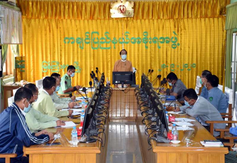 ကချင်ပြည်နယ်အတွင်း ကိုဗစ်-၁၉ ကပ်ရောဂါ ကာကွယ်၊ ထိန်းချုပ်၊ ကုသရေးလုပ်ငန်းများ စနစ်တကျဖြင့် ဌာနဆိုင်ရာအချင်းချင်း ပူးပေါင်းဆောင်ရွက်နိုင်ရေးအတွက် ညှိနှိုင်းအစည်းအဝေးကို ပြည်နယ်ဝန်ကြီးချုပ် ဦးဆောင်၍ ယမန်နေ့ နံနက်ပိုင်းတွင် ပြည်နယ်အစိုးရအဖွဲ့ရုံး၊ အစည်းအဝေးခန်းမ၌ ကျင်းပပြုလုပ်ခဲ့သည်။