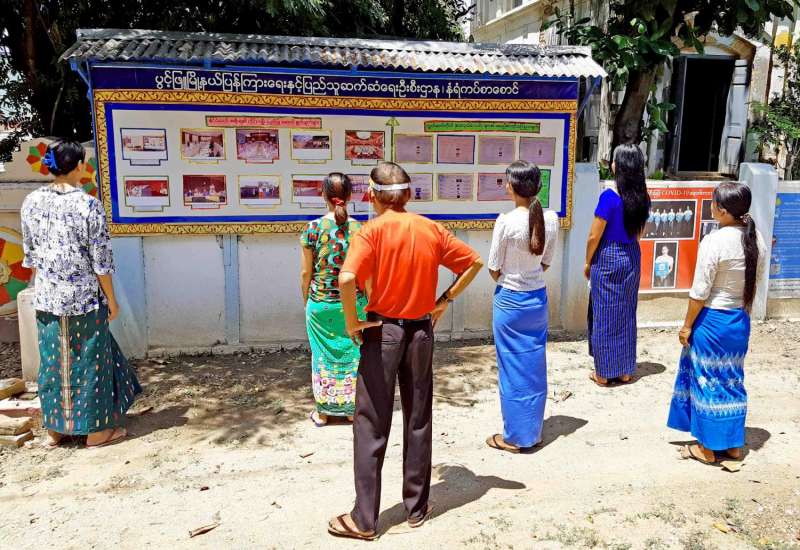မကွေးတိုင်းဒေသကြီး ၊ ပွင့်ဖြူမြို့နယ်ပြန်ကြားရေးနှင့် ပြည်သူ့ဆက်ဆံရေးဦးစီးဌာနမှ မြို့နယ်အတွင်းရှိ ပြည်သူများ ကူးစက်မြန် ကမ္ဘာ့ကပ်ရောဂါ COVID – 19 ရောဂါနှင့် ပက်သက်ပြီး ကြိုတင် ကာကွယ် နိုင်ရန်နှင့် ပါတီစုံဒီမိုကရေစီအထွေထွေ ရွေးကောက်ပွဲတွင် ဆန္ဒမဲပေးပိုင်ခွင့်ရှိသူတိုင်း မဲပေးခွင့် အခွင့် အရေး မဆုံးရှုံးစေရေးအတွက် ရွေးကောက်ပွဲဆိုင်ရာ သိကောင်း စရာများကို မြို့နယ်ရုံး မြေစိုက်ဘုတ် တွင် အသိပညာပေး ပြုလုပ်ပြသထားရှိရာ ယနေ့ နံနက်ပိုင်းက မြို့တွင်း ဖြတ်သန်းသွားလာသော ပြည်သူများက စိတ်ဝင်တစား လေ့လာဖတ်ရှုကြကြောင်း သိရသည်။