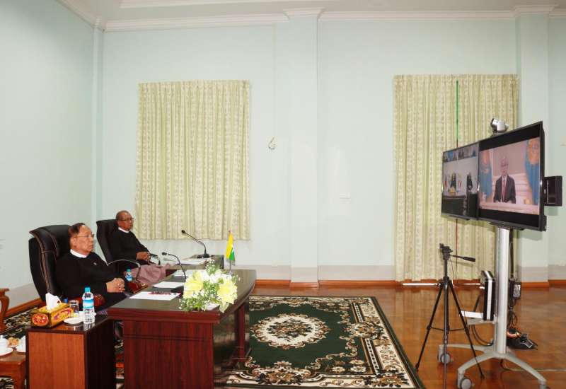 ကျန်းမာရေးနှင့်အားကစားဝန်ကြီးဌာန ပြည်ထောင်စုဝန်ကြီး ဒေါက်တာမြင့်ထွေးသည် ယနေ့နံနက်ပိုင်းတွင် ရခိုင်ပြည်နယ်တွင် လျင်မြန်စွာကူးစက်ဖြစ်ပွားနေသော ကိုဗစ်-19 အား ကာကွယ် ထိန်းချုပ်ရေးလုပ်ငန်းများနှင့် စပ်လျဉ်း၍ ဗဟို၊ ရခိုင်ပြည်နယ်နှင့် အခြား တိုင်းဒေသကြီး/ ပြည်နယ်များမှ ကျန်းမာရေးကဏ္ဍတာဝန်ရှိသူများနှင့် ကွင်းဆင်းအဖွဲ့များ Video conferencing စနစ်ဖြင့် ဆွေးနွေးပွဲသို့ နေပြည်တော်မှ ပါဝင်တက်ရောက်သည်။