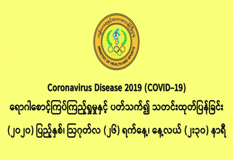 ကျန်းမာရေးနှင့် အားကစားဝန်ကြီးဌာနက (၂၉-၃-၂၀၂၀) ရက်နေ့တွင် ထုတ်ပြန်ခဲ့သော နိုင်ငံတကာ ခရီးသည်တင်လေကြောင်းခရီးစဉ်များ မြန်မာနိုင်ငံသို့ ပျံသန်းဆင်းသက်ခြင်းကို ယာယီ ကန့်သတ် ခြင်းဆိုင်ရာ ညွှန်ကြားချက် (Temporary Measures to Prevent Importation of COVID-19 to Myanmar through Air Travel) ၏ သက်ရောက်မှုကာလကို COVID-19 ရောဂါ ကာကွယ်၊ ထိန်းချုပ်၊ ကုသရေး အမျိုးသား အဆင့်ဗဟိုကော်မတီ၏ ခွင့်ပြုချက်ဖြင့် (၃၁-၈-၂၀၂၀) ရက်နေ့၊ မြန်မာစံတော် ချိန် (၂၃:၅၉) နာရီအထိ တိုးမြှင့် သတ်မှတ်ခဲ့ပါသည်။